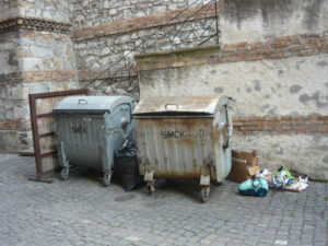 Jedu pro Zuzanku do Větřní, jde si pro vysvědčení do ZUŠ. Jak už jsem psala, bývají přeplněné kontejnery u kostela a nejsou tam kontejnery na tříděný odpad. Dnes se nám naskytl tento obrázek.